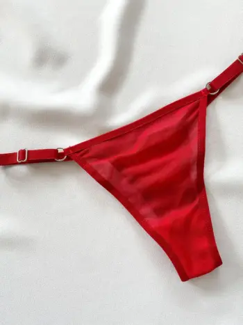 Dvodjelni lingerie set od mrežice s podesivim naramenicama na gornjem dijelu i podesivom širinom u struku. Intimni veš. Upute za