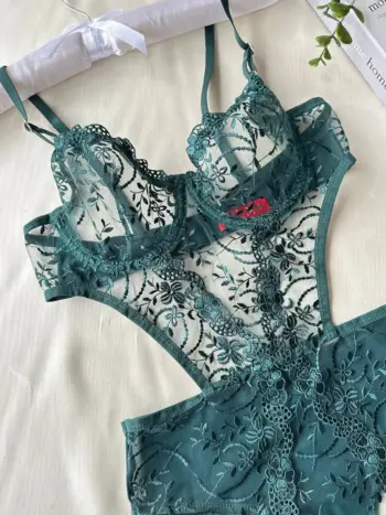 Lingerie body u kombinaciji mrežice i veza s podesivim naramenicama na gornjem dijelu . Upute za održavanje: pranje na 30°C