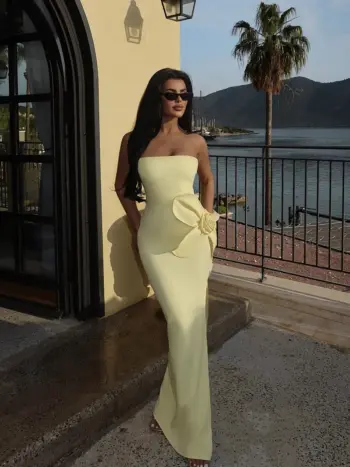 Gornji dio je podstavljen i ima spužve za grudi za dodatno oblikovanje. Haljina je u potpunosti podstavljena, osiguravajući besprijekoran izgled i udobnost. Zatvara se skrivenim ziperom na leđima. Idealna je za svečane prilike, od vjenčanja do gala večera.