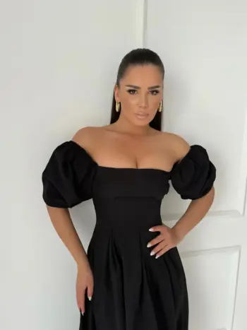 Elegancija koja pamti trenutke! Ova svečana haljina spaja ženstveni, korzetni gornji dio sa spuštenim ramenima i lepršavu A-suknju koja lijepo prati pokret.