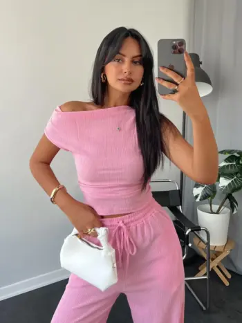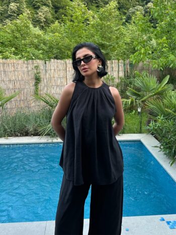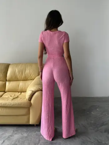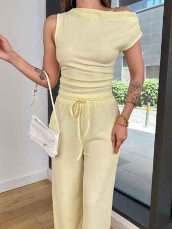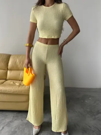 Dvodijelni Set sa Gumenim Strukom – Profinjen Minimalizam za Svaki Dan Ovaj lepršavi dvodijelni set donosi savršenu kombinaciju udobnosti i