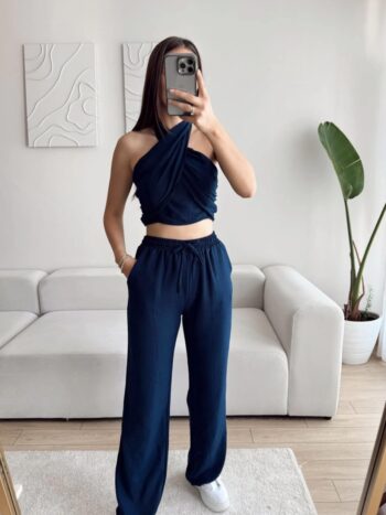 ✨ Elegantni komplet s preklopljenim topom ✨ Ovaj komplet spaja sofisticiranost i udobnost u savršenom balansu! Preklopljeni top bez rukava