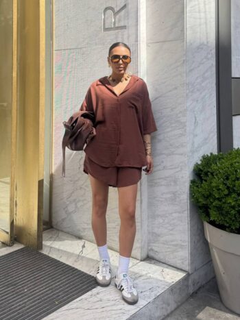 Lagan Set – Oversize Košulja i Šorc sa Elastičnim Strukom Ovaj ležerni set idealan je za tople dane kada želiš