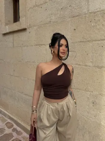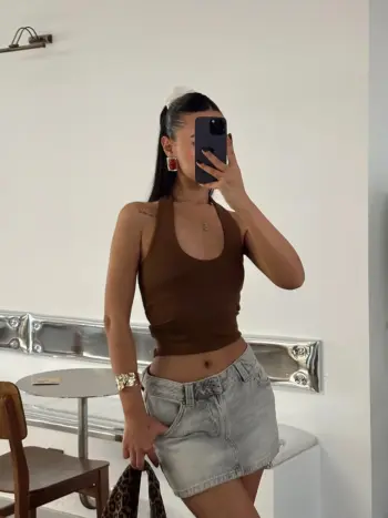 Drapirani Cowl-Halter Top s Ring Detaljem Savršen spoj profinjenog dizajna i sofisticiranog minimalizma. Kroj nježno pada preko tijela, dok draperirani
