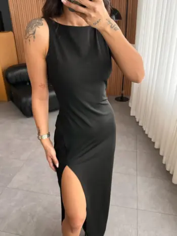 Elegantna crna haljina za posebne trenutke 🖤 Minimalizam koji oduzima dah – ova crna haljina je oličenje sofisticiranosti. Ravni izrez