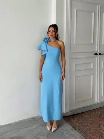 ✨ Elegantna haljina s jednim ramenom i ružom ✨ Budite oličenje elegancije u ovoj predivnoj haljini s jednim ramenom! Asimetrični