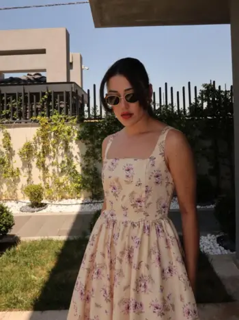 🌸 Elegantna cvjetna midi haljina sa četverokutnim ovratnikom 🌸 Lagana, podstavljena haljina idealna za vrtne proslave, ljetne šetnje i svečane
