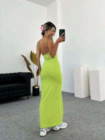 Uska midi haljina s otvorenim leđima – savršen spoj ležernosti i udobnosti! ✨ Ova elastična maxi haljina ističe figuru svojom